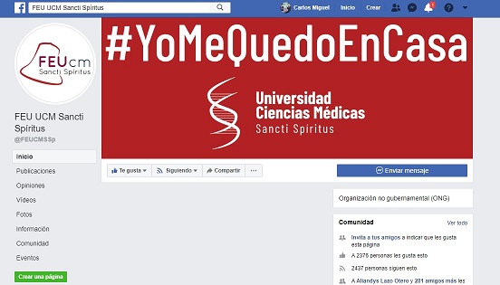 07/05/2020 | 1 Comentario El título de este artículo rinde honores al nombre del perfil en Twitter de la Federación de Estudiantes Universitarios de la UCM Sancti Spíritus, que al igual que la Unión de Jóvenes Comunistas de la institución desde hace un largo período participan activamente en las comunidades de redes sociales, principalmente Facebook y Twitter. Con casi 2300 seguidores en Twitter, el perfil de los estudiantes de la universidad en esta red social muestra una frecuencia sostenida de publicaciones, y deriva como uno de las tres páginas de las universidades de ciencias médicas del país más seguidas de Cuba. Forman parte habitual de sus publicaciones los contenidos sobre la labor económica y social del gobierno cubano, detalles del sistema educativo del Ministerio de Salud Pública, acciones y eventos desarrollados en la institución universitaria, y en los tiempos actuales, tweets sobre la universidad espirituana y su papel frente a la pandemia mundial del coronavirus. Así mismo, el perfil en Facebook de los estudiantes del centro muestra una labor que lo catapulta como uno de los más populares de Cuba en su comunidad. Todo este trabajo de los estudiantes de la universidad espirituana viene acompañado de la labor práctica de los muchachos, esta vez dedicada especialmente a las pesquisas activas de síntomas respiratorios, uno de los frentes esenciales de Cuba para disminuir la propagación de la Covid-19. Concluimos este artículo con una de las actividades de más impacto del grupo de dirección de la FEU y UJC del centro en los últimos días: la realización de una radio base en el contexto del homenaje del pueblo cubano al día internacional de los trabajadores el pasado 1 de mayo. Con dos secciones ubicadas en cada entrada de la universidad, nuestros jóvenes destacaron la labor frente a la pandemia de las autoridades cubanas, el pueblo y la UCM de Sancti Spíritus. Departamento de Extensión Universitaria–07/05/2020