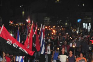 Los rostros jóvenes dicen consignas, lemas y llevan banderas y pancartas. Caminan a buen paso. Quien mira ahora la Avenida de los Mártires la ve llena de luces disfrazadas de antorchas, tradición iniciada por jóvenes aquel 27 de enero de 1953 en La Habana.